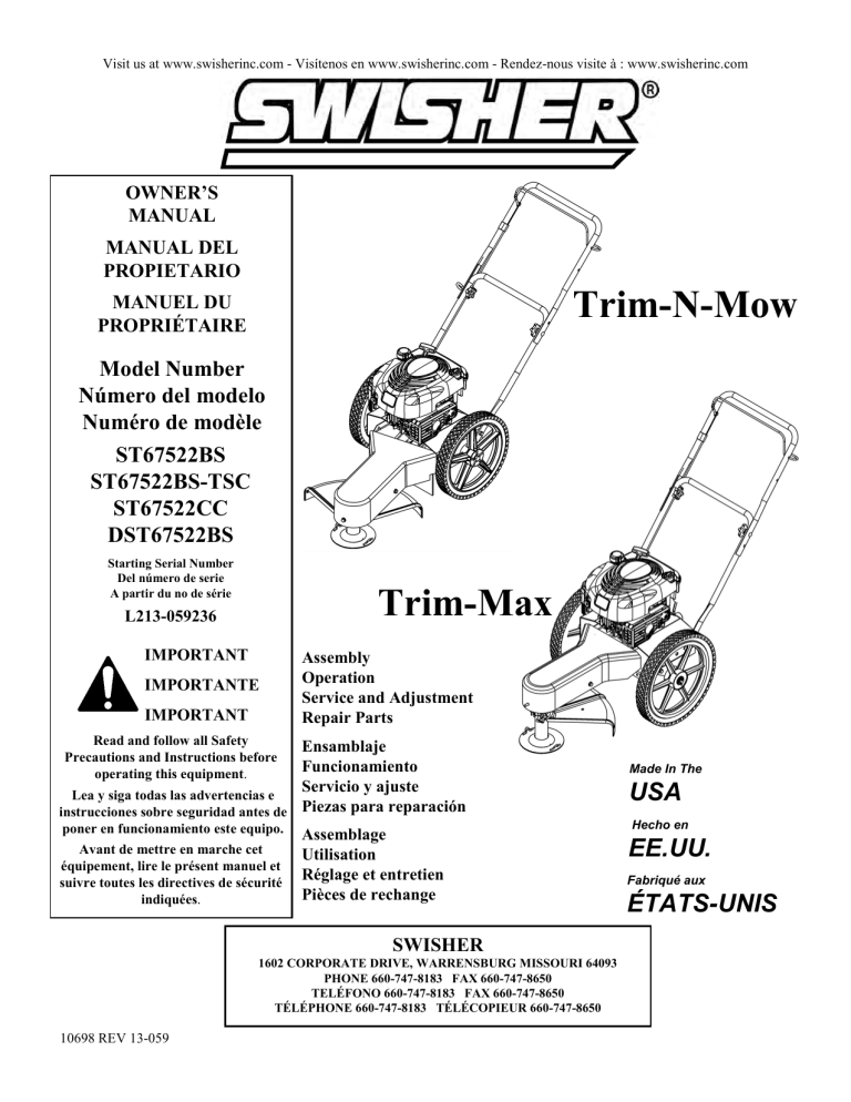 Swisher St67522Bs Swisher St67522Bs : Free download of swisher st67522bs manuals is available on onlinefreeguides.com.
